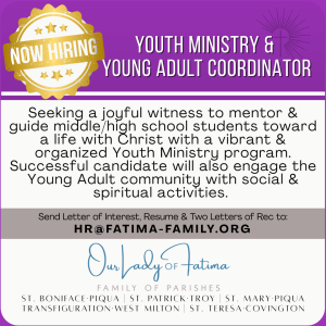 APPLY NOW! Youth Ministry & Young Adult Coordinator